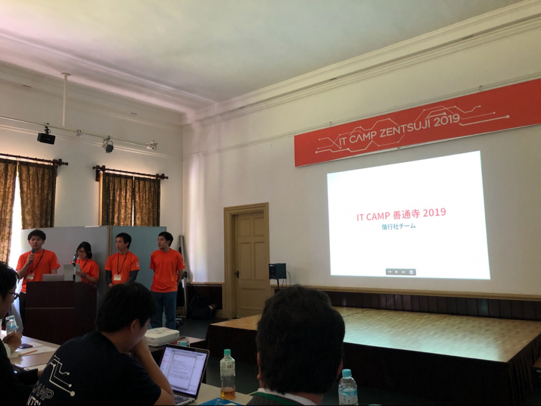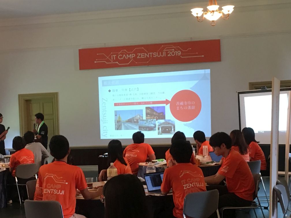 9月21日~23日の3日間、善通寺市で開催された「IT CAMP 善通寺 2019」に経営情報科情報ビジネスコースの学生2名が参加しました。善通寺市が抱える地域の課題を県内外の学生や社会人が考え解決するチームハッカソンで、今回は「観光」をテーマに実施されました。
