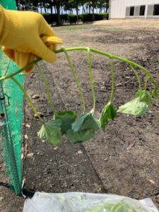 学生リクエストにより赤オクラを植えました。赤色が珍しく楽しみです。