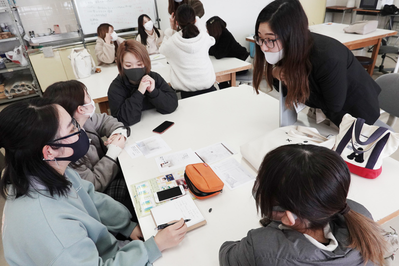 その後、現況調査結果を基にしながら、実際にプロジェクトを進めていく上で重要なコンセプト決定(完成させる空間構成の方向性決定)のため、リノベーション後の利用客ペルソナ(完成後の対象ゲストハウスに宿泊するユーザー像)について全員で意見を出し合い、『20代の幼馴染女性4名』と決定しました。コンセプトやペルソナを決めるために何度も打合せを繰り返しましたが、コロナ禍での活動であるため、学内から全員で、またはいくつかのグループに区切ってのオンラインミーティングを実施しました。