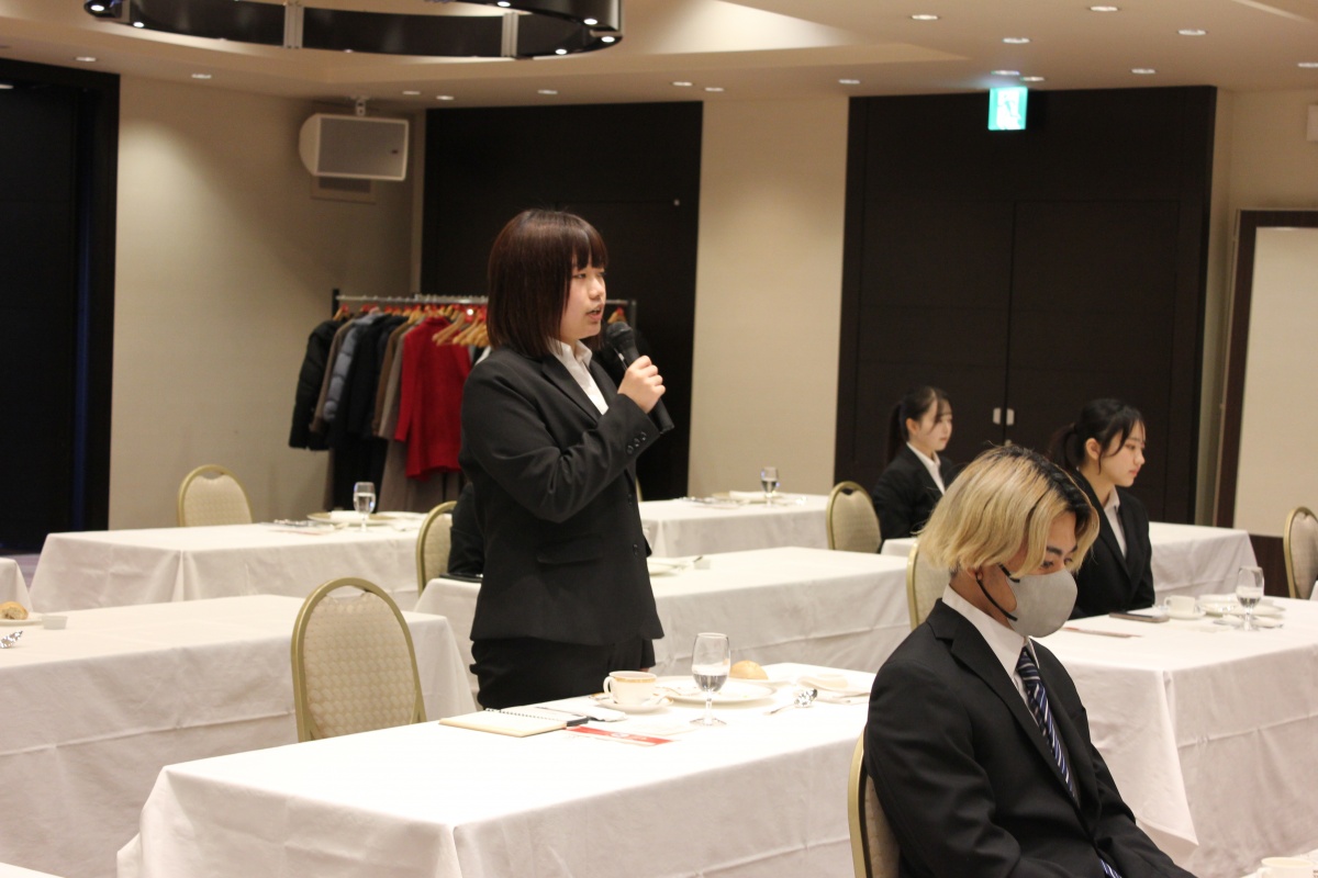 感染症対策のため、テーブル席に一人ずつ着席し、ナイフ・フォークの使い方、食事の心構えなど、スタッフの方に丁寧に説明していただきました。最初は緊張気味だった学生たちも、美味しい料理を食べ、次第に緊張もほぐれ、楽しみながら学ぶことができました。