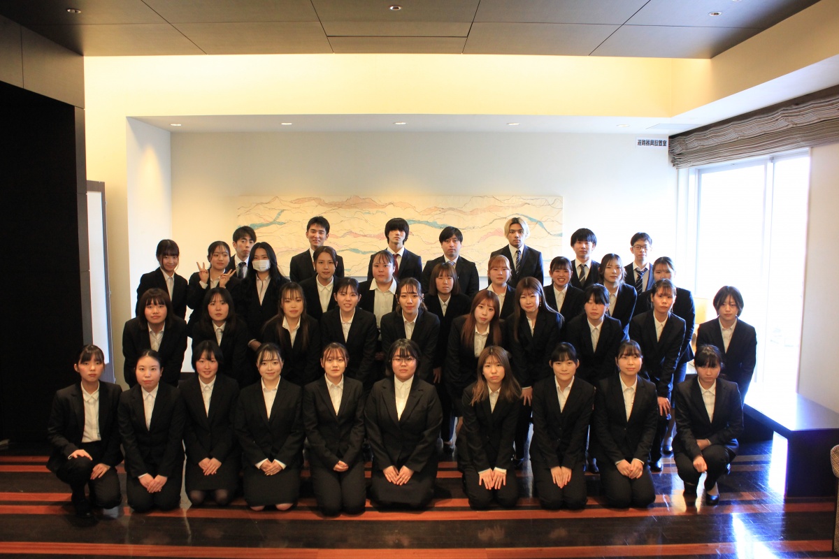 昨年度に続き、高松国際ホテルにてスタッフの方のご指導のもと、実際にコース料理を食べながら食事のマナーを学びました。料理については、総料理長から説明がありました。