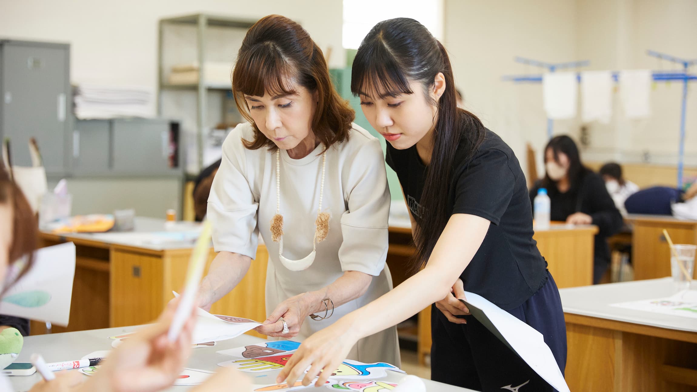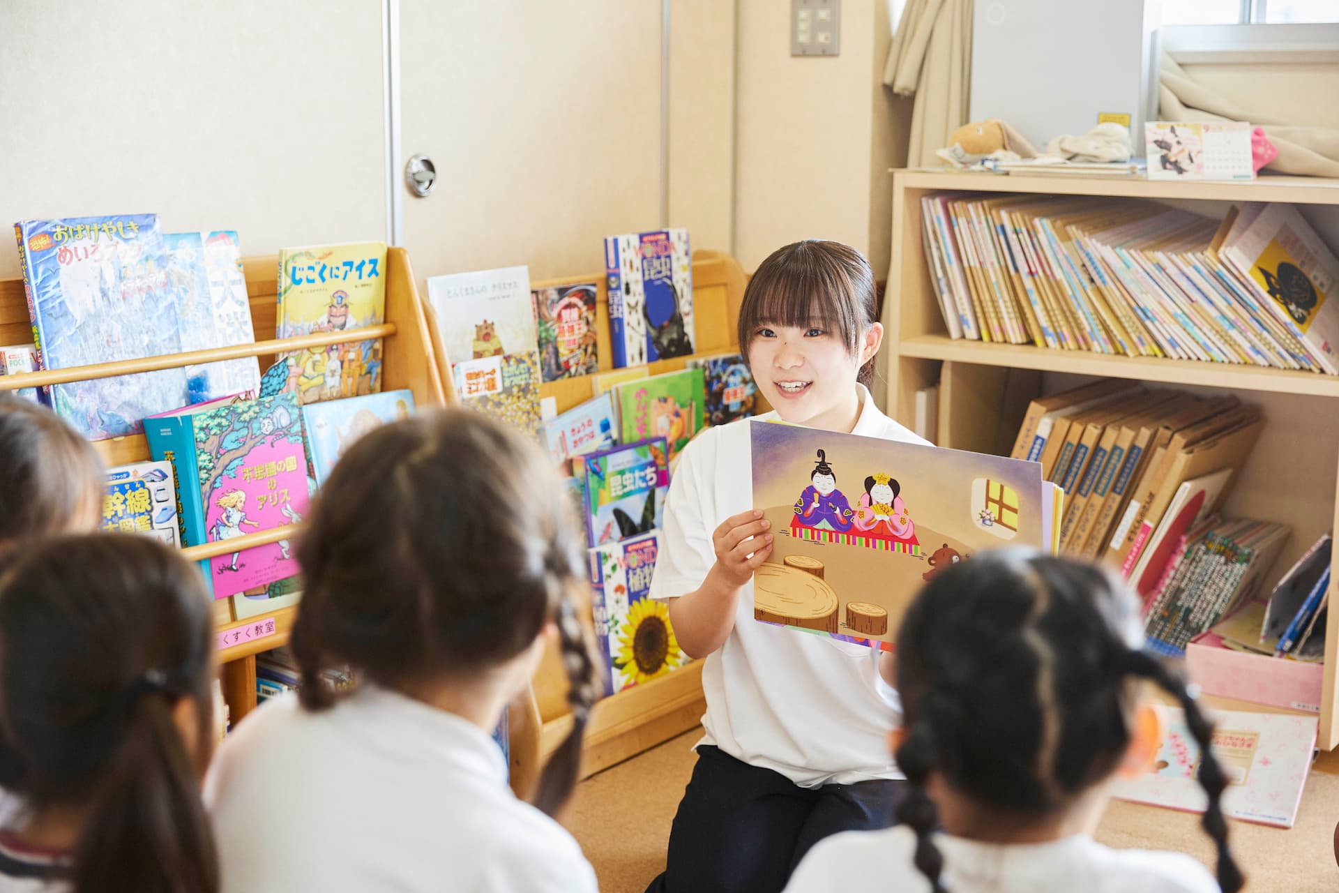 子どもが大好きで、子どもと一緒に成長したいと思っている方へ。子どもたちに自信を持って支援できる“憧れの先生”になりませんか。子ども学科では、現場経験に裏打ちされた教授陣の専門教育と、附属幼稚園や附属こども園などで、子どもたちの成長を間近に見つめながら学べる実践教育を行っています。実践を通して、子どもたちにかかわりながら専門知識や技術を高められ、なによりも子どもたちの“こころ”をたくさん感じることができます。子ども一人ひとりの成長や個性を見つめられるように、保育技術を一緒に磨きましょう。