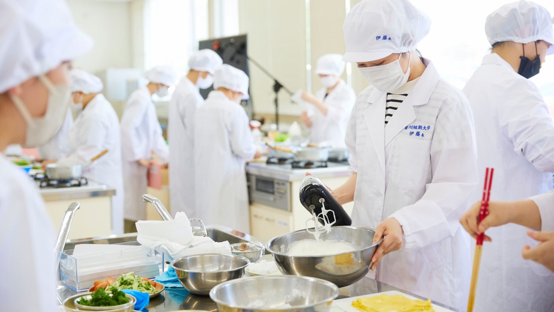 栄養士として働くための専門的な実習や応用調理、食品加工学などの専門科目を学び、実践的な力を身につけます。