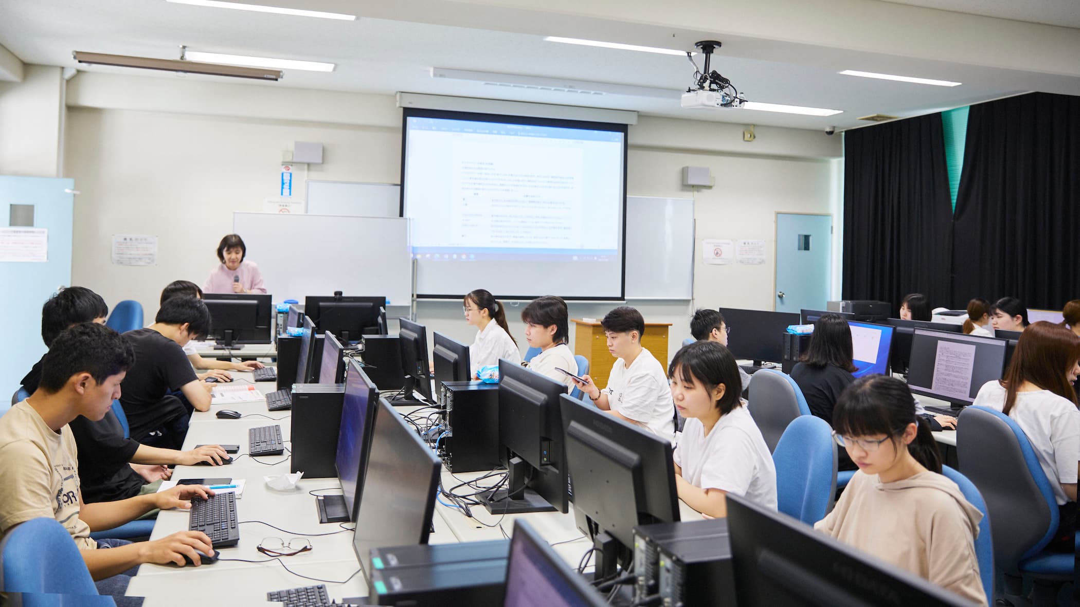 ICT(情報通信技術)を駆使し、経営実務・情報処理実務に対応できるスキルを磨きます。コンピュータ・情報リテラシーはもちろん、経営の基礎から応用、経済学や簿記会計、秘書、観光ビジネス、司書、医療事務に至るまで幅広く基礎から学べます。資格取得も全面サポート!学びの数だけ着地点があります。