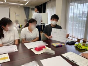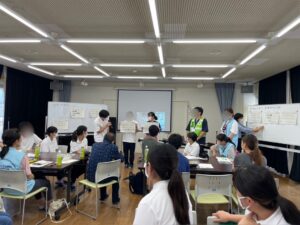 6班に分かれ、始めに自己紹介シートで打ち解けた後、「“学生と地域”協働で一歩踏み出す防犯活動」をテーマに各グループで話し合い、その成果を発表しました。
