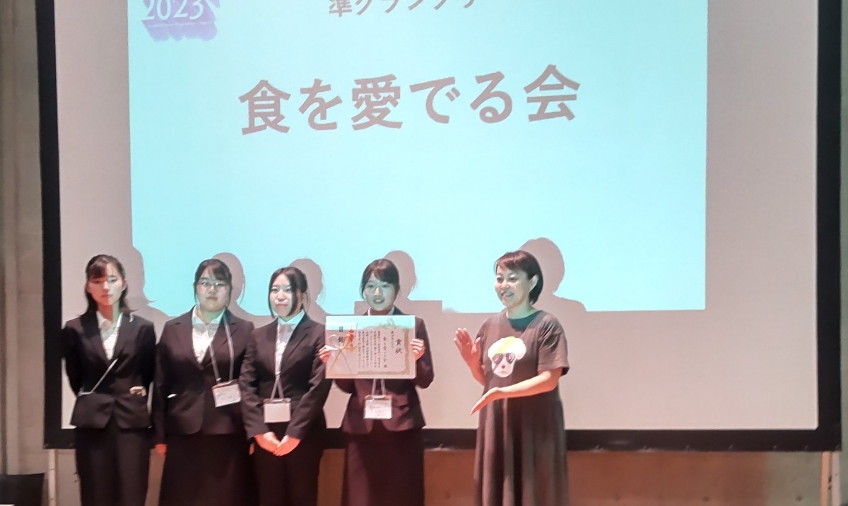 6月24日(土)に一般社団法人香川学生支援会主催「第1回 かがわ学生サークルアワード2023」のプレゼンテーション審査が丸亀町レッツホールで実施され、本学の「食を愛でる会」が準グランプリを獲得しました。