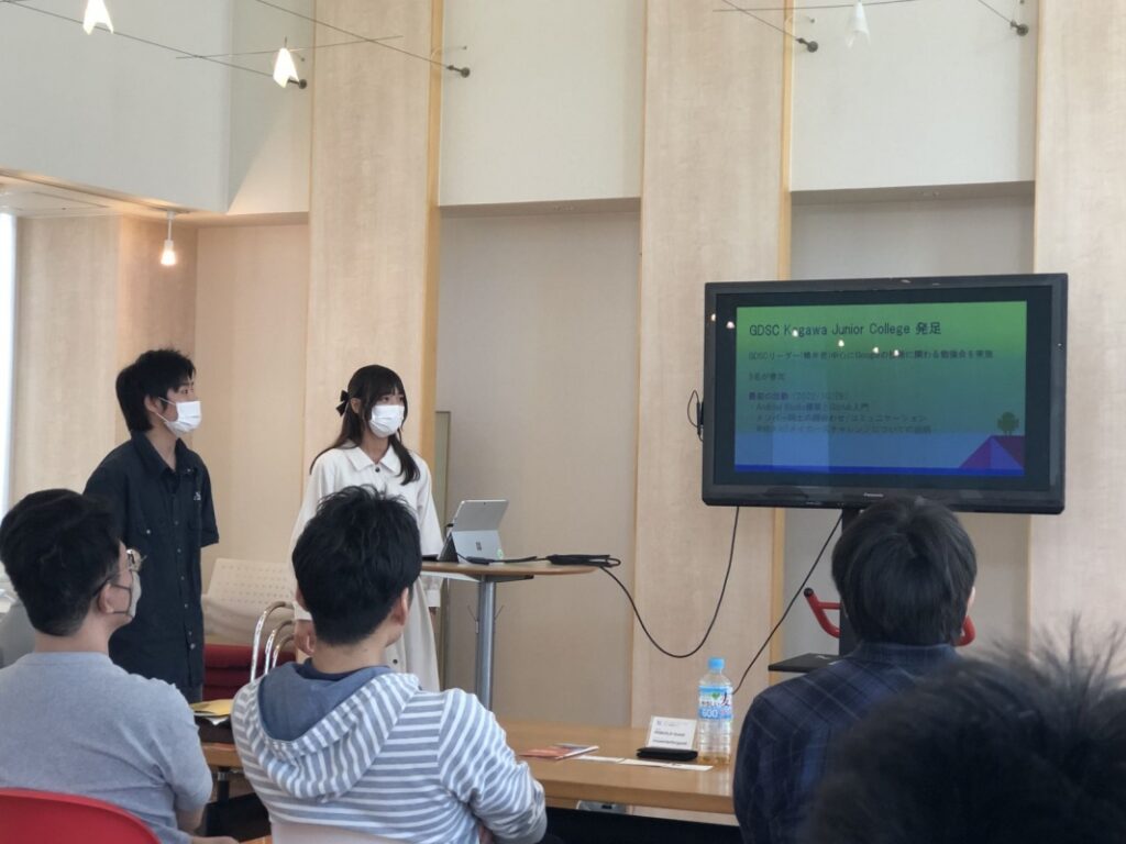 Google Developer Student Clubの活動報告登壇 学友会 経営情報科 2023年5月29日 SNSでシェアする 本学学生が、5月27日(土)に実施された、UdonTech LT大会[ URL ] へ参加しGoogle Developer Student Clubの活動に関わる報告を行ってきました。 参加数は25名程度、社会人エンジニア、デザイナー、外国人エンジニア等に交じりライトニングトークとしての登壇を学生3名が実施しました。 Google Developer Student Clubとは [ URL ] 本学は、2023年5月時点では、日本の中四国において唯一のGDSC活動拠点となっています。