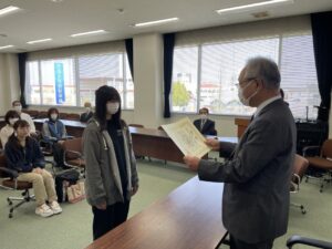 受賞者には学長より賞状と副賞が贈られ、「学生同士で切磋琢磨して成長していってほしい。受賞されたみなさんには他の学生の模範となって活躍されることを期待しています。」と激励の 言葉が贈られました。