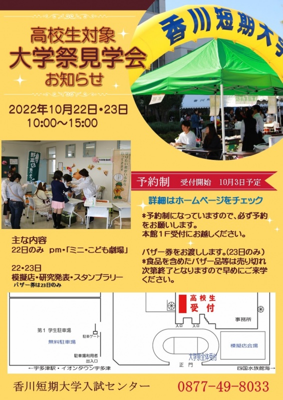 | 2022年度高校生対象大学祭見学会の申し込みは は受付終了 〆切 10月12日(21:00まで) | ||||