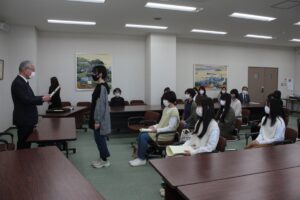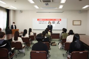 令和4年4月19日(火)、香川短期大学の入学前教育の一つであるeラーニングプログラム「カタランⅠ」の最優秀者、優秀者3名、優良者10名の表彰式を行いました。