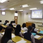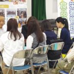 全体ガイダンスまでの待ち時間に大学生活をDVDでご紹介し、学生スタッフによる説明を聞いていただきました。20分の全体ガイダンス後、参加者の皆さんは各学科で催す模擬授業や体験コーナーで、様々な専門分野の体験をするとともに先輩学生と授業内容や学生生活、資格取得について楽しく懇談しました。