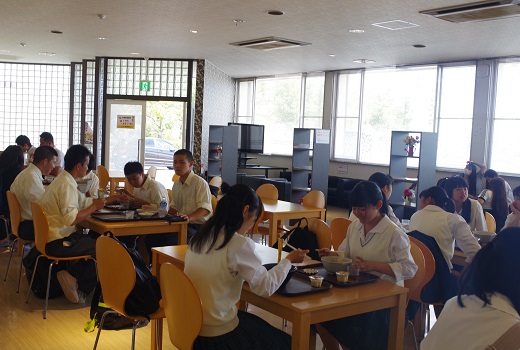 6月17日(月)香川県立津田高等学校の1年生36名と引率の先生が大学見学に来られました。2時間30分程でしたが、とても和やかな説明会になりました。また学内の施設や設備等を見学してもらい、学生食堂で昼食体験も行いました。