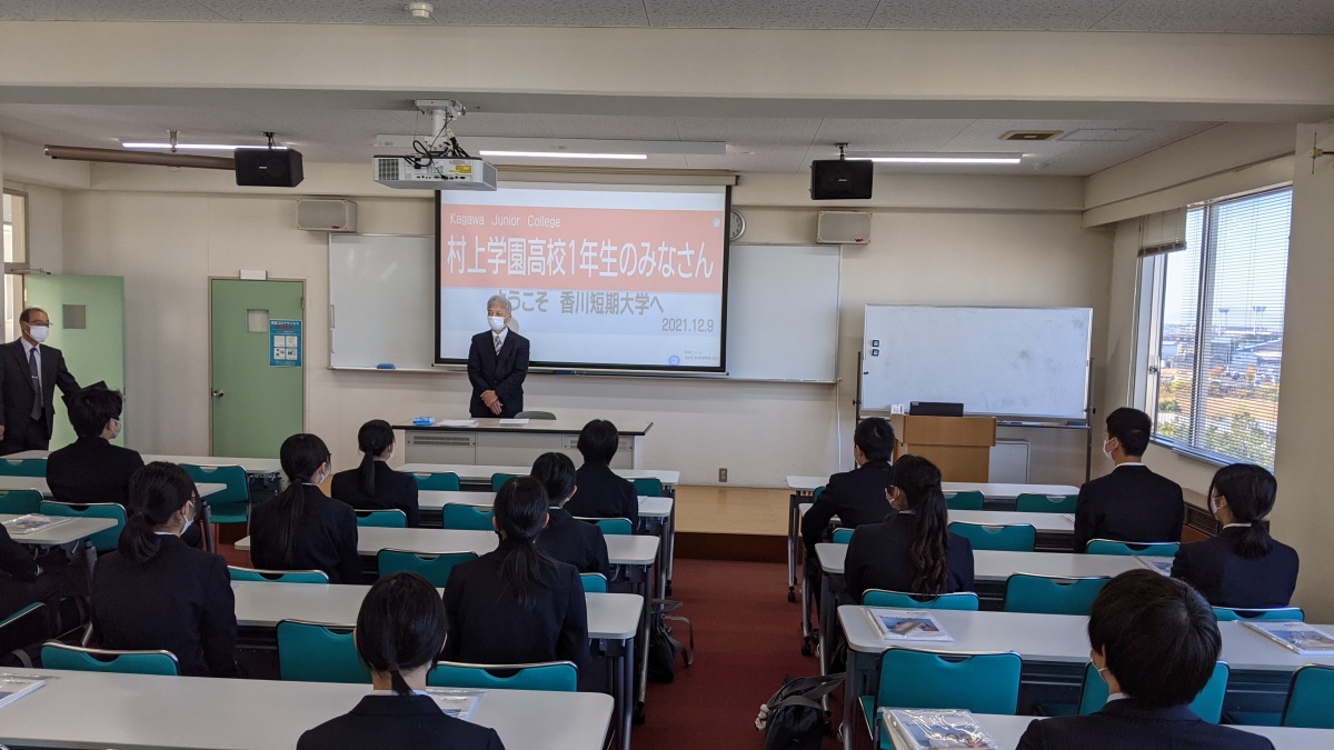 12月9日(木)、村上学園高等学校(丸亀校)の1年生17名と引率の先生4名が大学見学に来られました。