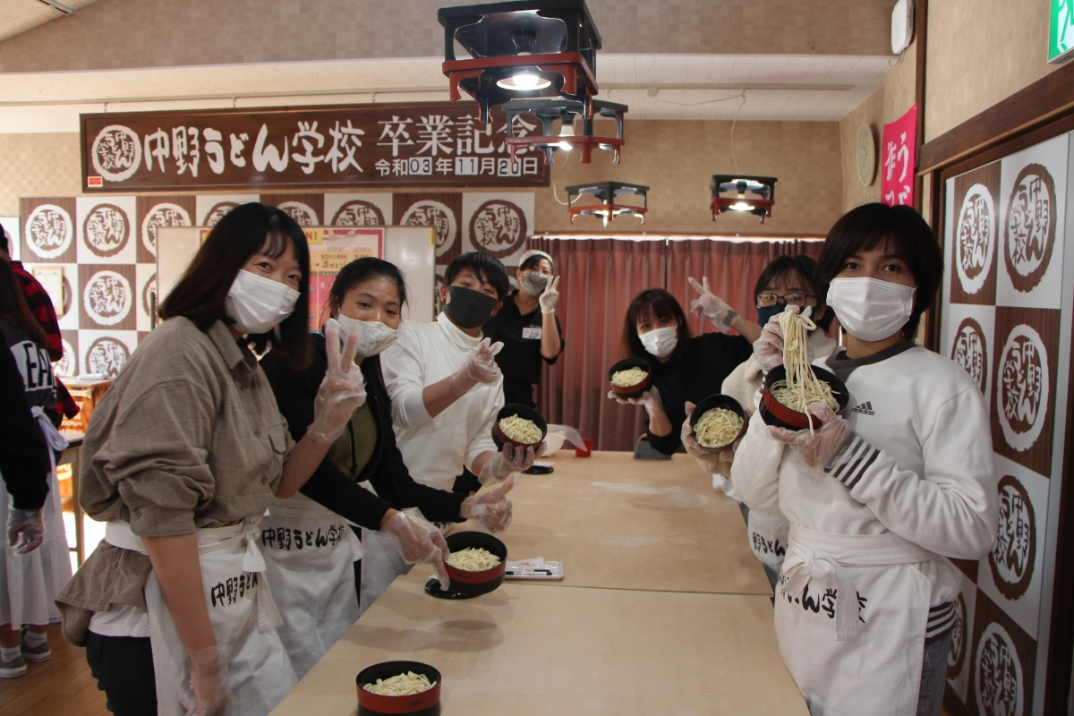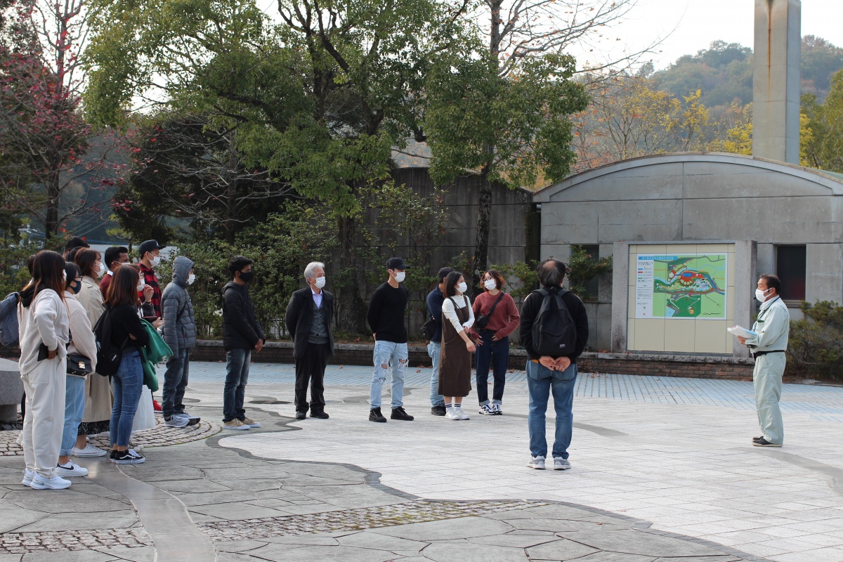 11月20日、留学生21人と齊藤副学長ら教職員5人が参加して留学生日本文化体験研修会を実施しました。今年の研修は県内の名所を巡り留学生同士の交流を深めることが目的です。絶好の秋晴れのもと、バスで短大を出発、総本山善通寺を参拝後、中野うどん学校でうどん打ち体験・昼食、金刀比羅宮を参拝し香川用水記念公園で紅葉を楽しみました。その後、琴弾公園で寛永通宝を見学、最後に父母ヶ浜で“夕日と人物が潮だまりに映りこむ光景”を撮影することが出来ました。この研修では香川の素晴らしい地域資源を知り、お互いの交流を深めることが出来ました。