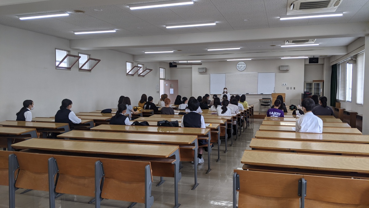9月30日(木)香川県立飯山高等学校の1年生32名と引率の先生が大学見学に来られました。入試センターからの大学概要説明や紹介DVDを見てもらった後、学科に分かれ授業に参加してもらいました。