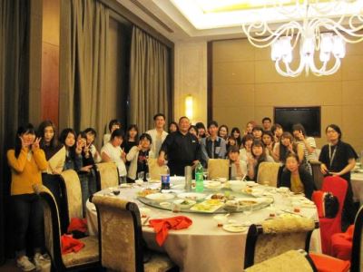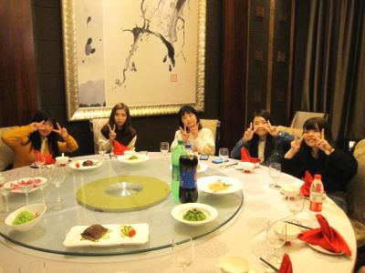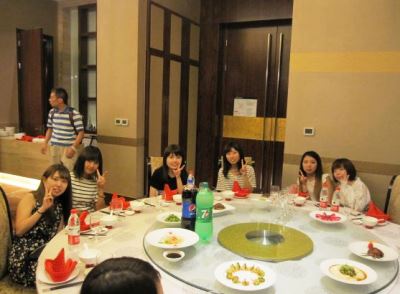 春秋航空で高松空港から上海浦東空港へは2時間弱で到着しました。昨年はなかった外国人に対する指紋認証システムの機械が導入されており、入国に少し時間がかかってしまいましたが、無事入国できました。2階建ての立派な貸切バスで一路無錫へ。ホテルに入る前に夕食は無錫シェラトンホテルで広東料理と四川料理を美味しく頂いて、長旅で少しお疲れ気味だった学生たちも元気になりました。