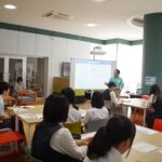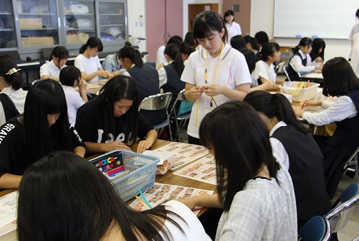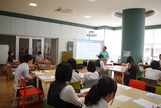 全体ガイダンスの後は、各学科で催す模擬授業や体験コーナーで、それぞれに、専門分野の体験をするとともに先輩学生と授業内容や学生生活、資格取得について楽しく懇談しました。