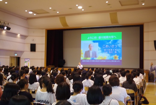 保護者対象説明会は、初めに副学長から、入試や学生生活、就職進学について説明があり、その後、学科別に分かれてグループ懇談しました。