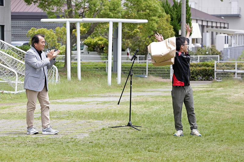 平成30年5月19日(土)香川短期大学学友会実行委員会による春の恒例「平成30年度スポーツ大会」が開催されました。スポーツ大会は、大会を通じクラスの親睦を深めるとともに、普段あまり交流のない他学科の学生とも交流が図れるようにと、実行委員会のメンバーが中心となって、企画から当日の運営まですべてを行っています。前日から当日の明け方まで降り続く大雨で開催が危ぶまれましたが、学生たちの祈りが通じて開催予定時刻には気持ちの良い青空となり、クラス対抗で宅急便リレー、ムカデ競争、しっぽ取り、障害物競走を行いました。今年はアジア5カ国20名の留学生が在籍していますが、初めて目にする競技に戸惑いながらも、優勝をめざしベストを尽くしました。今年の優勝は生活介護福祉専攻1年生!総合で同得点1位だった優勝常連の子ども学科に“ジャンケン”で勝利し、栄光と豪華な賞品を手にしました
